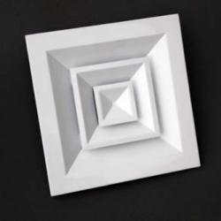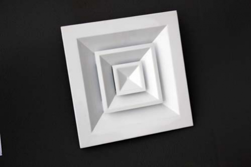 Square diffuser has characteristics such as straight lines, smooth surface. Vane angle is fixed. Vanes are connected by corner plates. Overall vane and frame adopt separate structure to facilitate installation and adjustment. It can be designed according to shape of room to select diffusers with different air blowing directions and be used together with adjusting valve. Square diffuser has four airflow blowing forms: single direction (A1SDN), double direction (A2SDN), triple direction (A3SDN), and quaternary direction (S4SD).